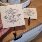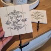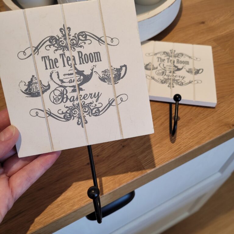Velikost: 12*12 cm dřevěná cedulka + kovový věšáček (6,5 cm)