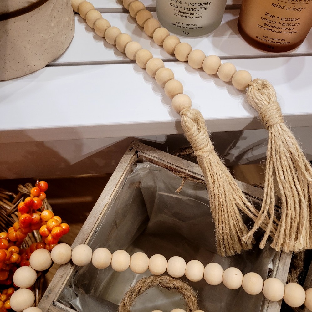 • Dřevěné tradiční Farmhouse korálky se střapci na konci.