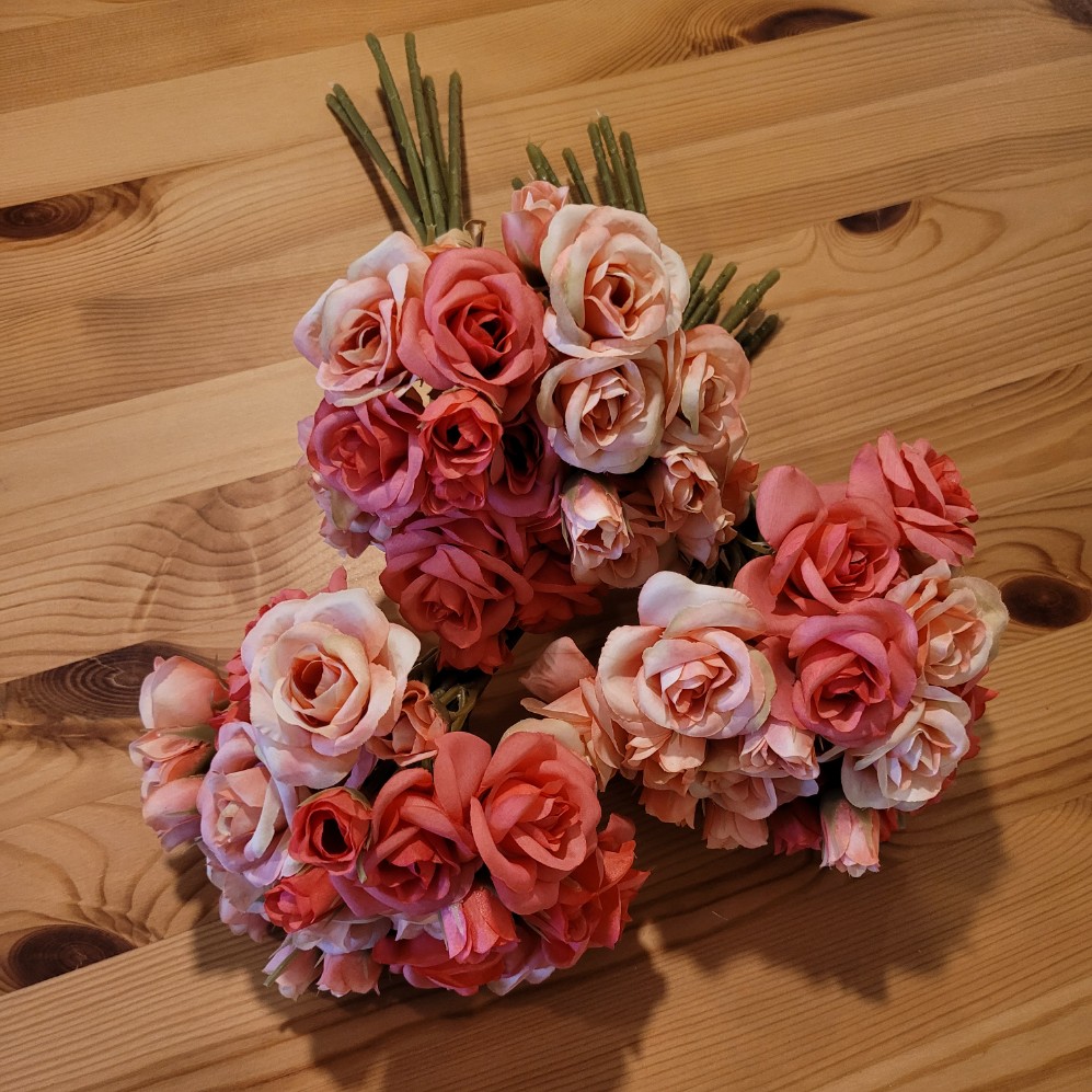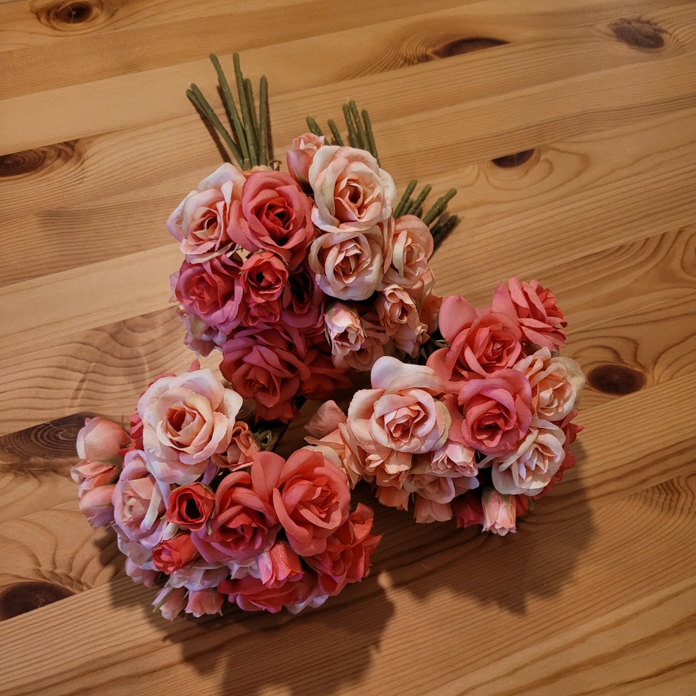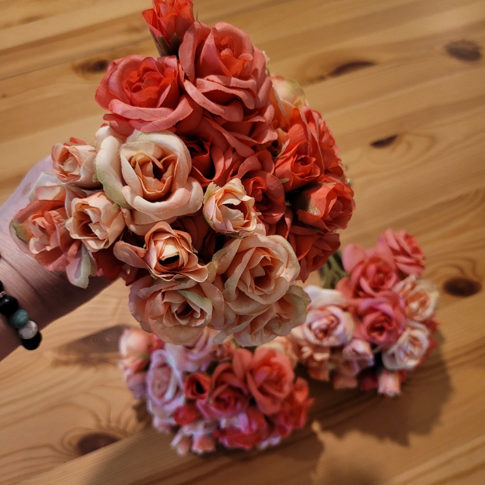 Velikost: 30 cm délka celé kytice, obsahuje celkem 36 kvítlů ve velikosti od 2 do 4,5 cm.