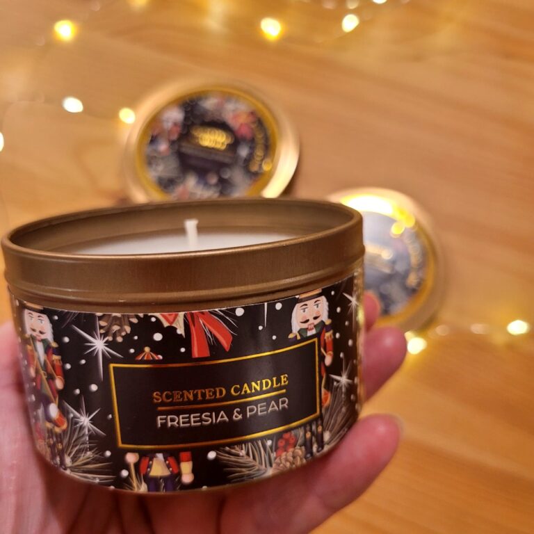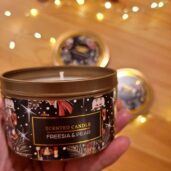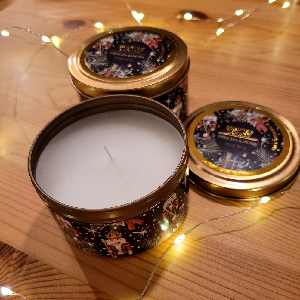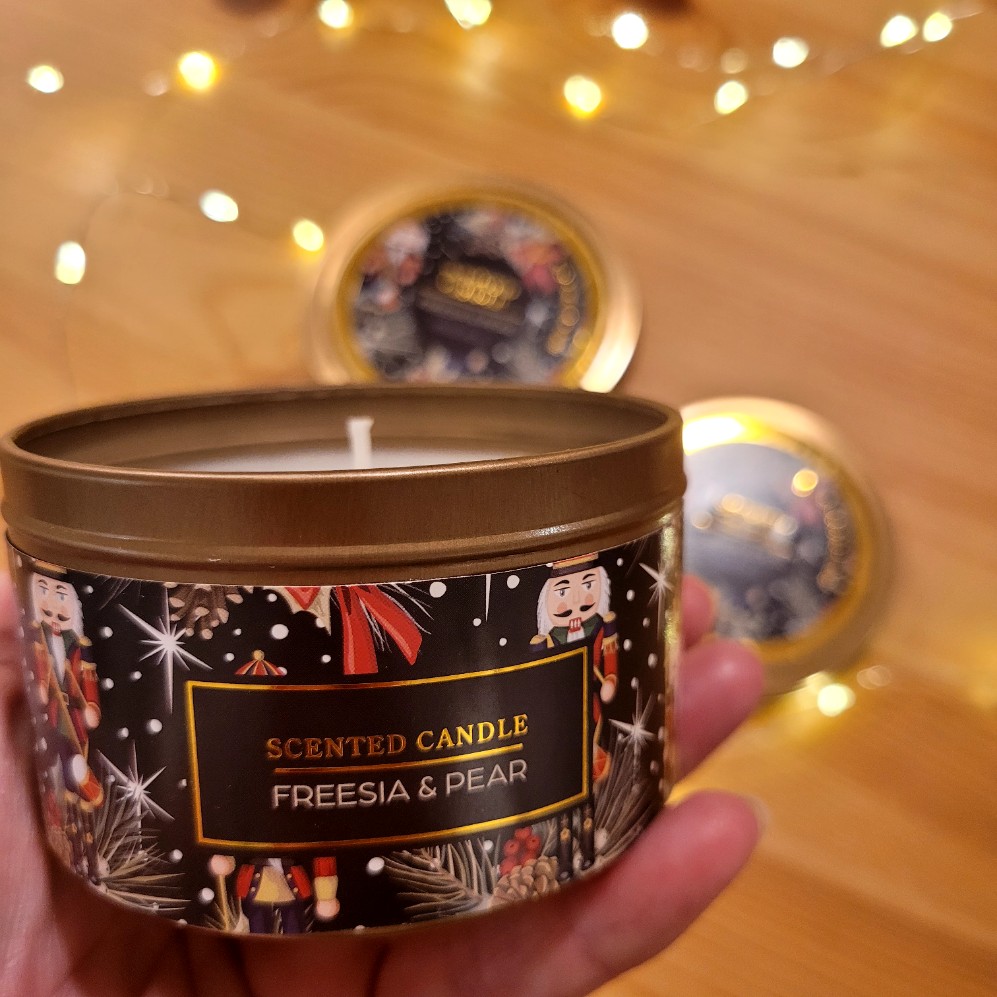 • Tradiční Vánoční vonná svíčka se svěží vůní frézie a hrušky.