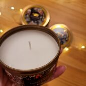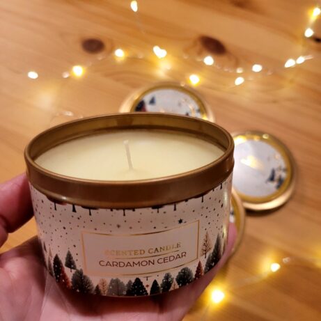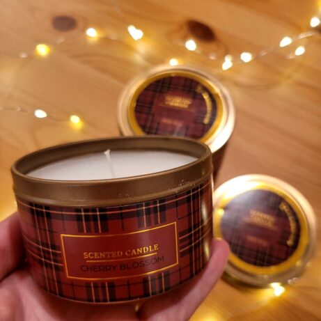 Velikost svíčky je 8 cm v průměru a 5 cm výšky.
