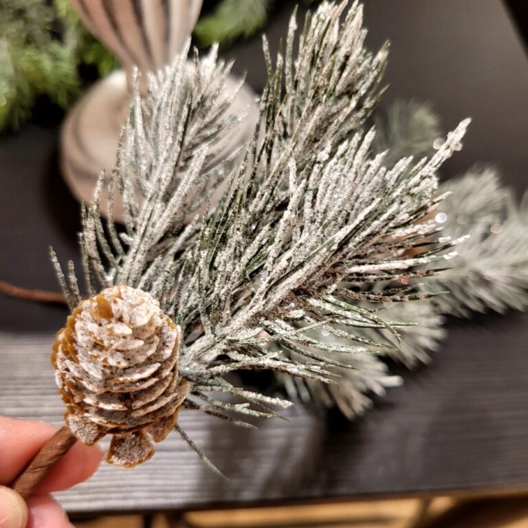 Tahle jednoduchá zimní větvička se vám bude hodit jak na Vánoční dárky jako příjemná přízdoba, tak i třeba na etažér, poličku či jako přídavek do zimní girlandy...